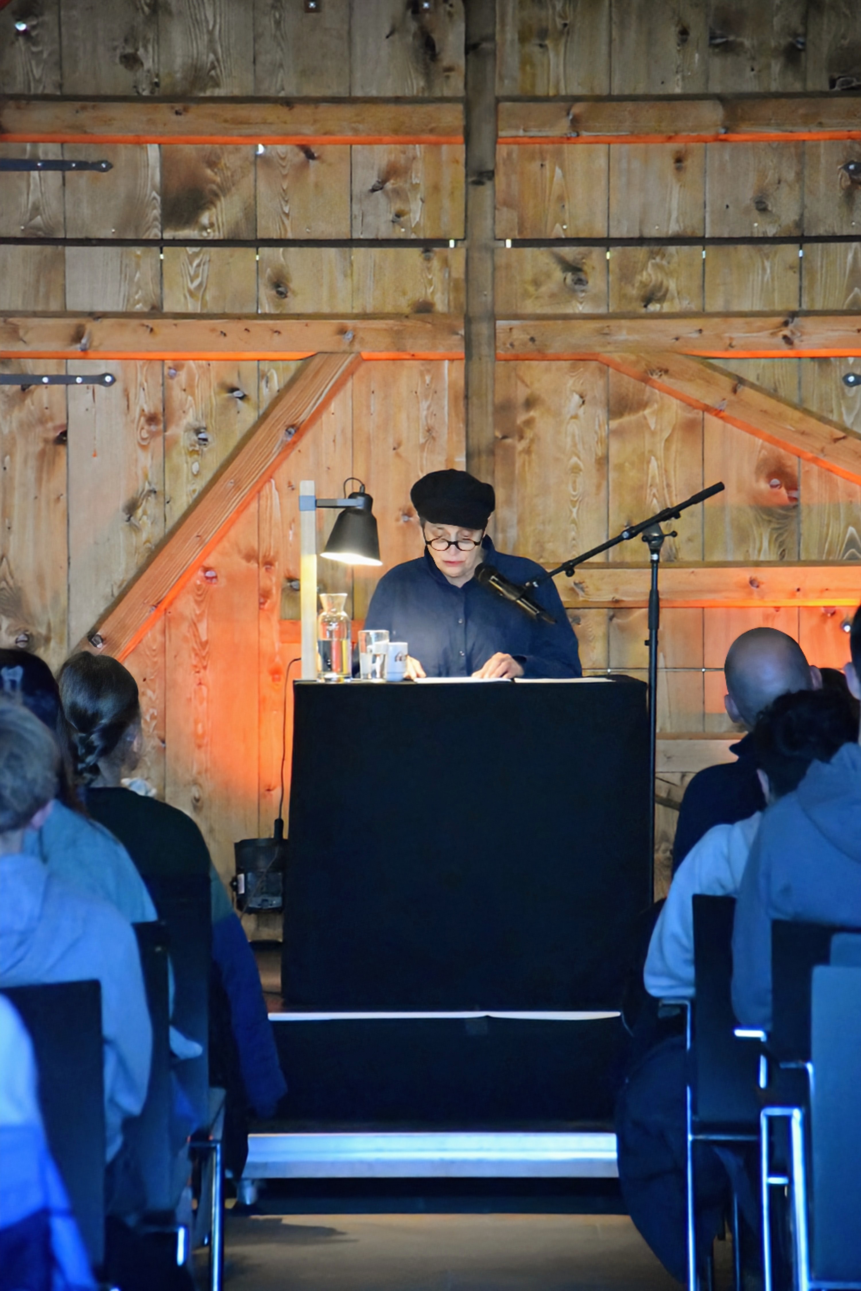 Am 5. November las die Schauspielerin Katharina Thalbach aus dem Roman „Der Junge im gestreiften Pyjama“ von John Boyne im „Im Weißen Ross“ im LWL-Freilichtmuseum Detmold. 140 Schüler*innen, darunter die Klassen 9GN und 9K des Grabbe-Gymnasiums, lauschten gebannt den Szenen aus dem Roman, der die fiktive Geschichte des neunjährigen Brunos erzählt, der als Sohn eines Kommandanten mit seiner Familie in die unmittelbare Nähe eines Konzentrationslagers in Polen zieht. Am Zaun begegnet er dem gleichaltrigen Shmuel, der im Lager gefangen ist, und freundet sich voller Unschuld mit dem jüdischen Jungen im gestreiften Pyjama an. Durch die Figur des neunjährigen Brunos wird eine beobachtende, kindlich unschuldig-kritische Perspektive in der literarischen Auseinandersetzung mit dem Holocaust eröffnet.